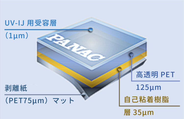 UV・ラテックスインク対応の再剥離の自己粘着PETです。透明度が高く、ガラス装飾に最適。