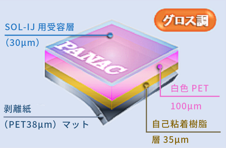 溶剤インク対応。白色タイプの再剥離の自己粘着PETです。貼り剥がしが容易なため施工性抜群です。