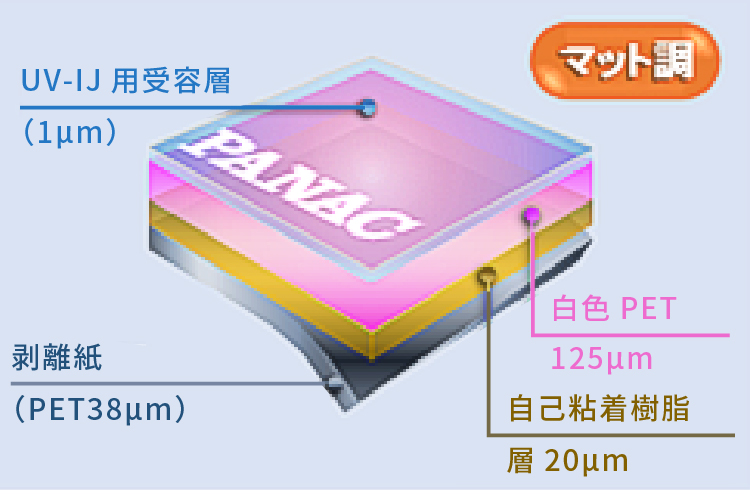 UVインク対応の自己粘着、白色PETのタイプです。貼り剥がしが容易で施工性抜群。