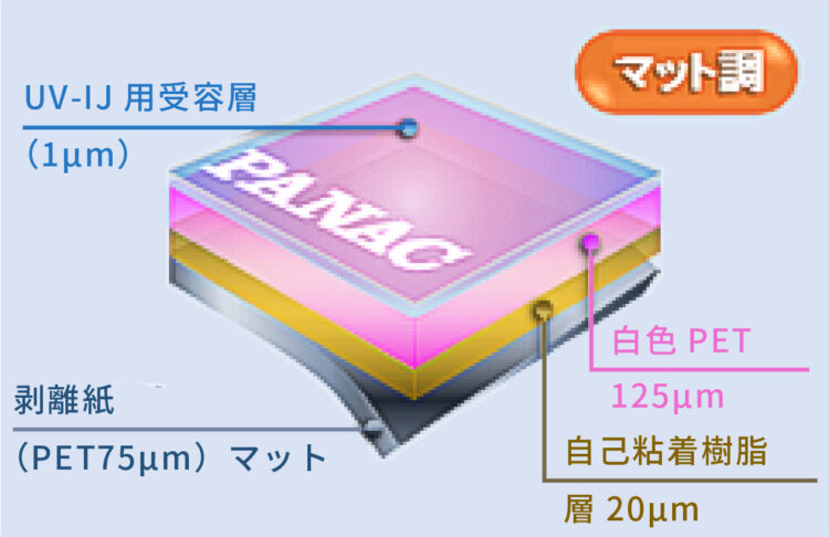 UV・ラテックスインク対応の自己粘着、白色PETのタイプです。貼り剥がしが容易で施工性抜群。