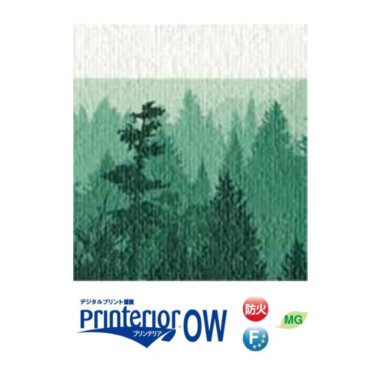 プリンテリアOW/水性インク用の非塩ビ素材のオレフィン基材を使用したデジタルプリント壁紙。各種インクで防火(不燃/準不燃)・F☆☆☆☆認定取得。液ラミ必須(LCL4AP)。風合い豊かな布目調(アラオリ)。